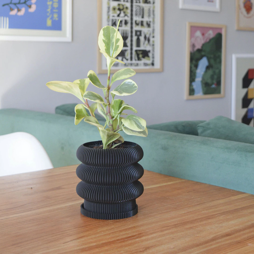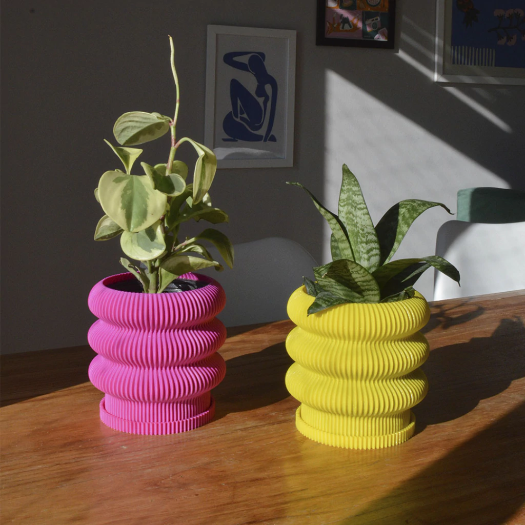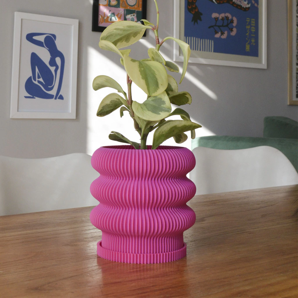 Maceta Round: realizada en impresión 3D, incluye platito haciendo juego