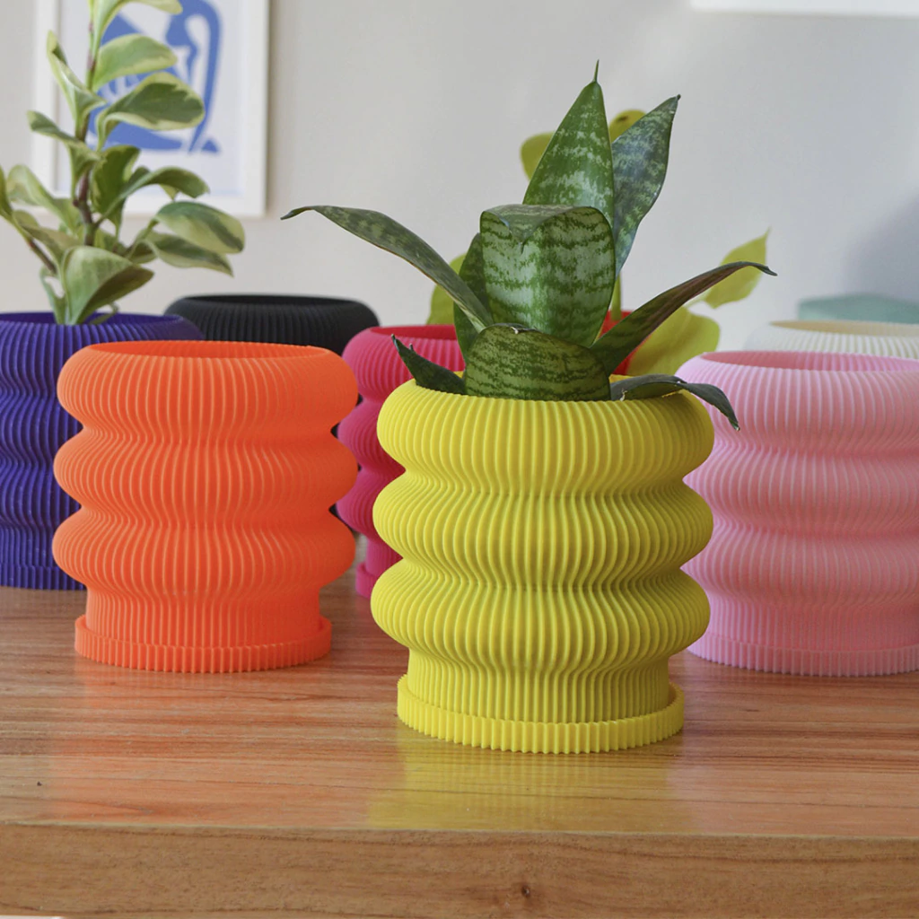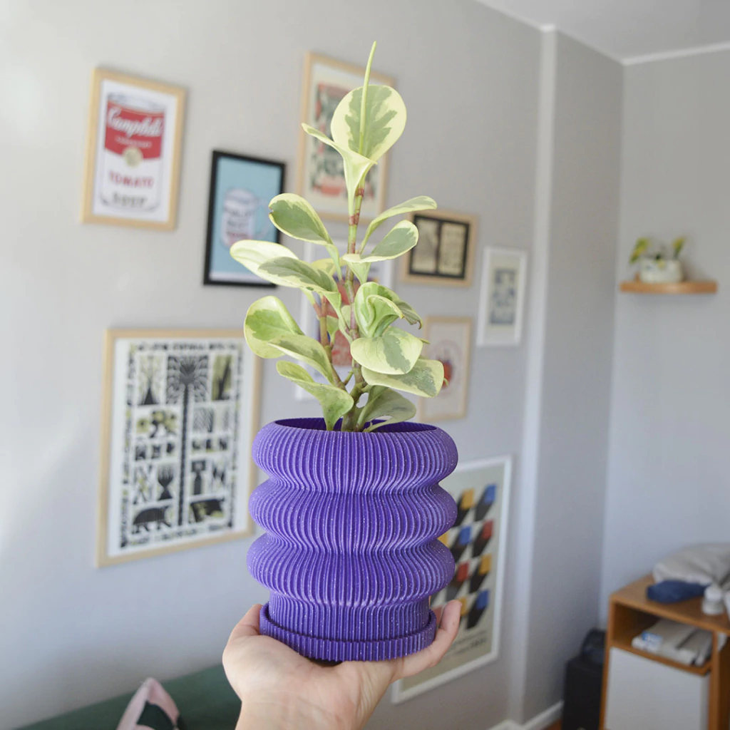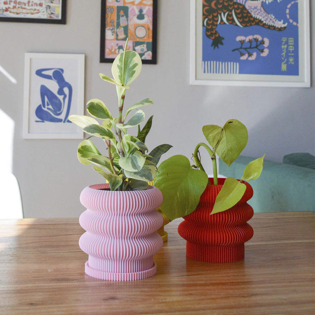 Maceta Round: realizada en impresión 3D, incluye platito haciendo juego